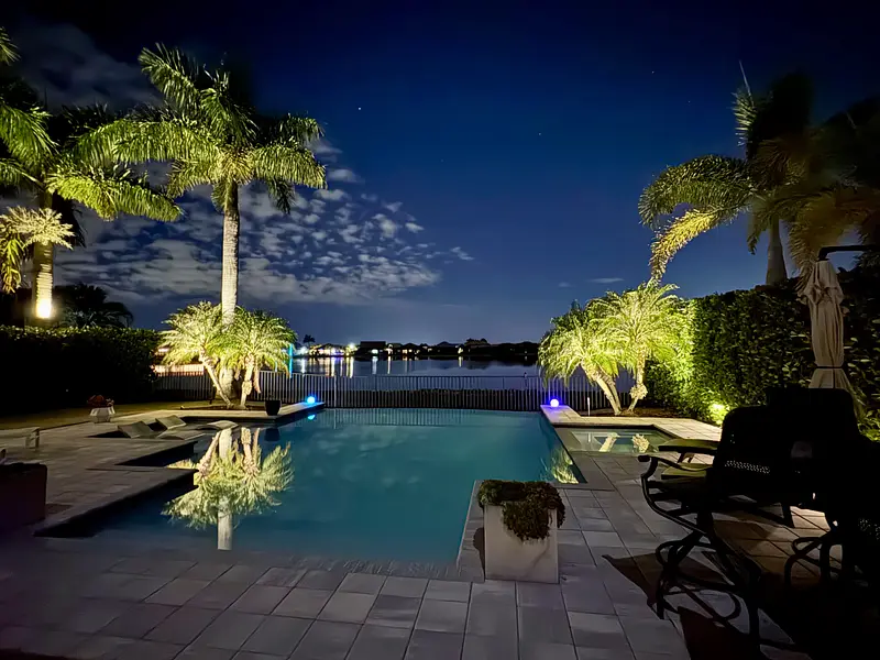 Expert lighting for pool cages, lanais, and outdoor spaces including speaker and holiday lights.